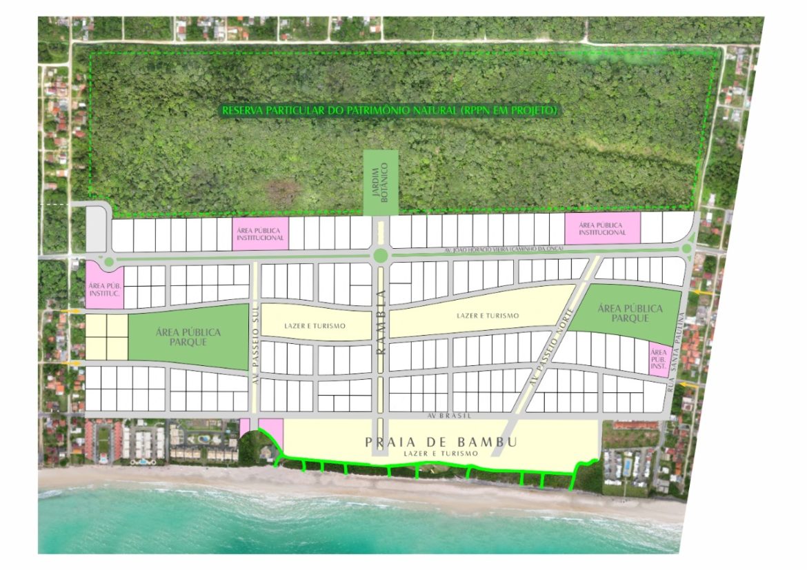 Descontadas as áreas de circulação, verde e institucional, sobram 441 mil m2 para a área habitacional que é composta de 176 lotes, distribuídos em 34 quadras. Os lotes têm metragem média de 2.500 m2 e serão destinados à construção de prédios residenciais e comerciais. Nas áreas públicas institucionais a Prefeitura implantará equipamentos e serviços que atenderão todo o Município e as áreas de lazer e turismo também serão de desfrute público. Itapoá terá um novo ponto de encontro!