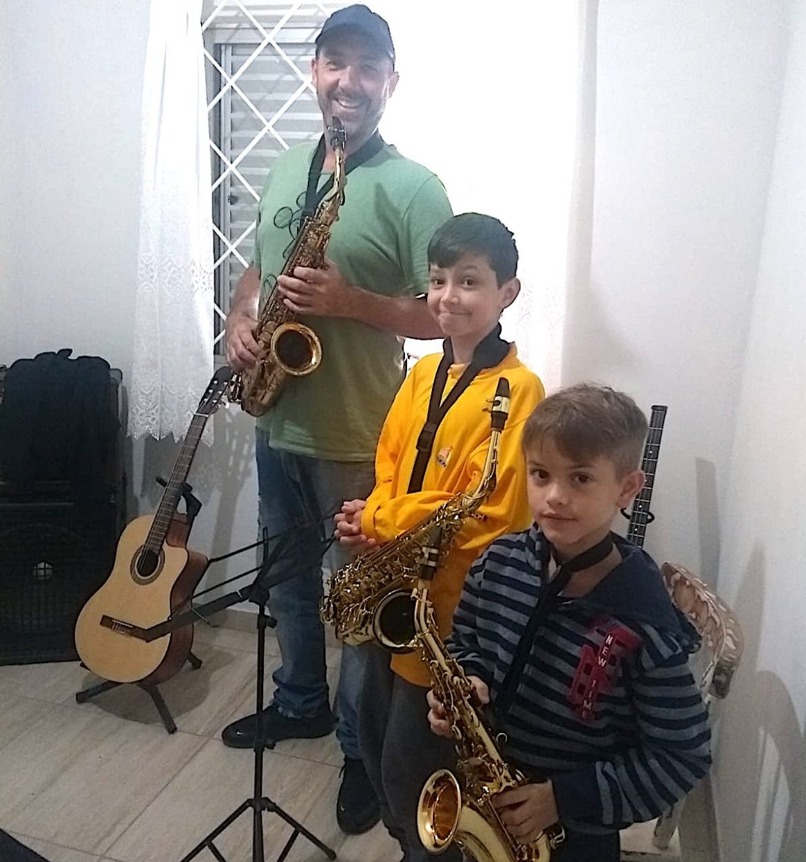 O crescimento de Itapoá impulsiona também o setor cultural. Às boas escolas de música existentes soma-se agora o CCMI – Centro Cultural de Música de Itapoá. Na foto, o Professor Alexandre Luciano Alves (Garam) compartilha seu conhecimento e experiência com os novos músicos Kauê Vasconcelos e João Gabriel Ocneliski. A Riviera Santa Maria apoia a iniciativa com bolsas de estudo. Instagram da escola aqui.